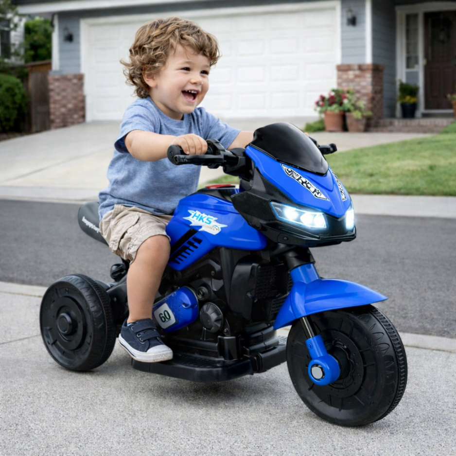 Proporcione diversão e autonomia para seu filho com a Mini Moto Elétrica Infantil 6V Dark Azul, equipada com música e luzes vibrantes.